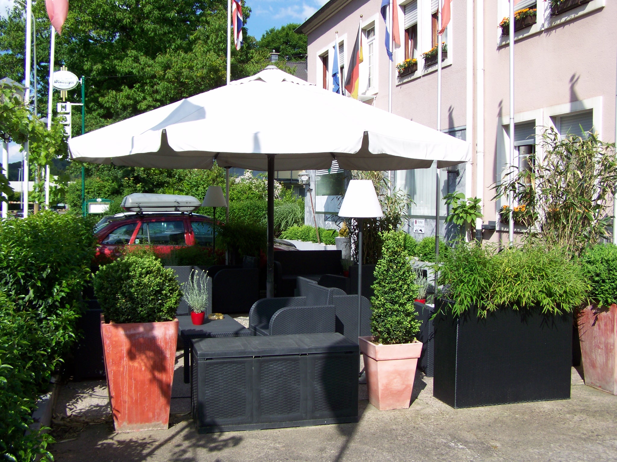 Unsere kleine gemütliche Hotelbar und Biergarten laden zum Verweilen ein.